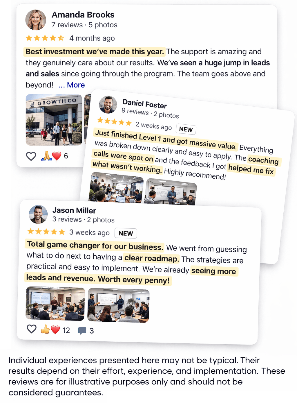 All names, testimonials, and examples are fictional and for demonstration purposes only.